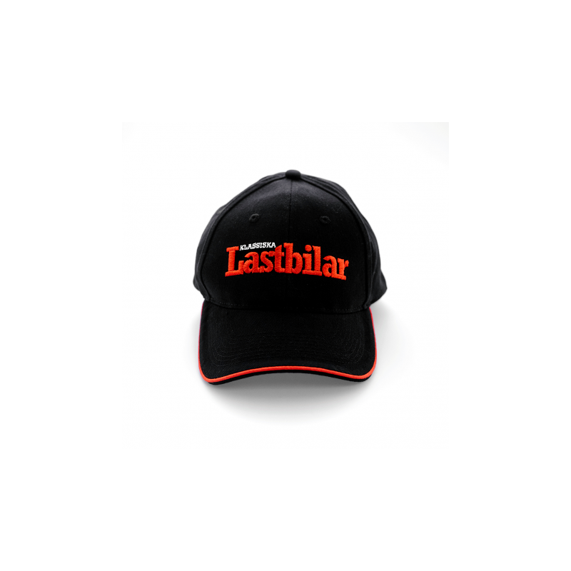 Svart keps med tidningens logotyp, Klassiska Lastbilar, broderad framtill. På kardborrbandet i nacken står det ”100% tung nostalgi”.