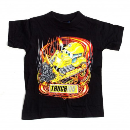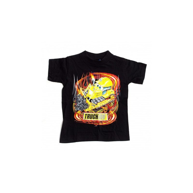 Svart t-shirt till barn med illustrerad schaktmaskin på bröstet samt tidningens logotyp.