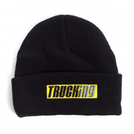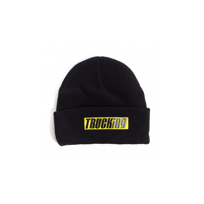 Svart mössa med tidningens logotyp, Trucking, broderad på.