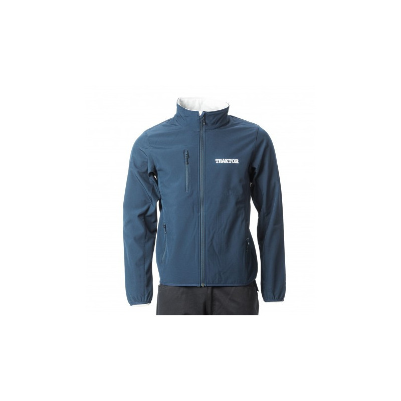 Marinblå herrjacka i softshell. Jacka med två framfickor, en bröstficka och två innerfickor. Resår i ärm och linning. Broderad logotype på bröstet.