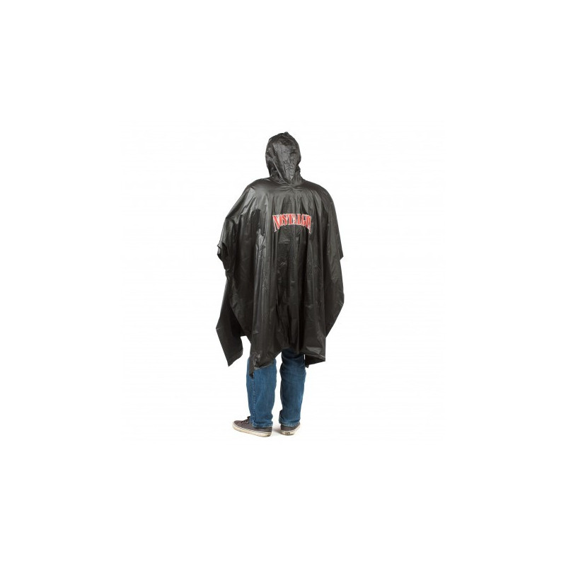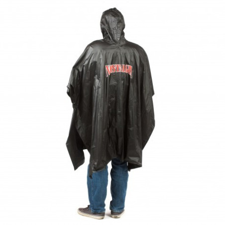 Kraftigare regnponcho med luva. Ponchon går att använda många gånger och är perfekt att ha med sig i väskan, då den lätt, smidig och hopvikbar. Nostalgia står tryckt på ryggen.