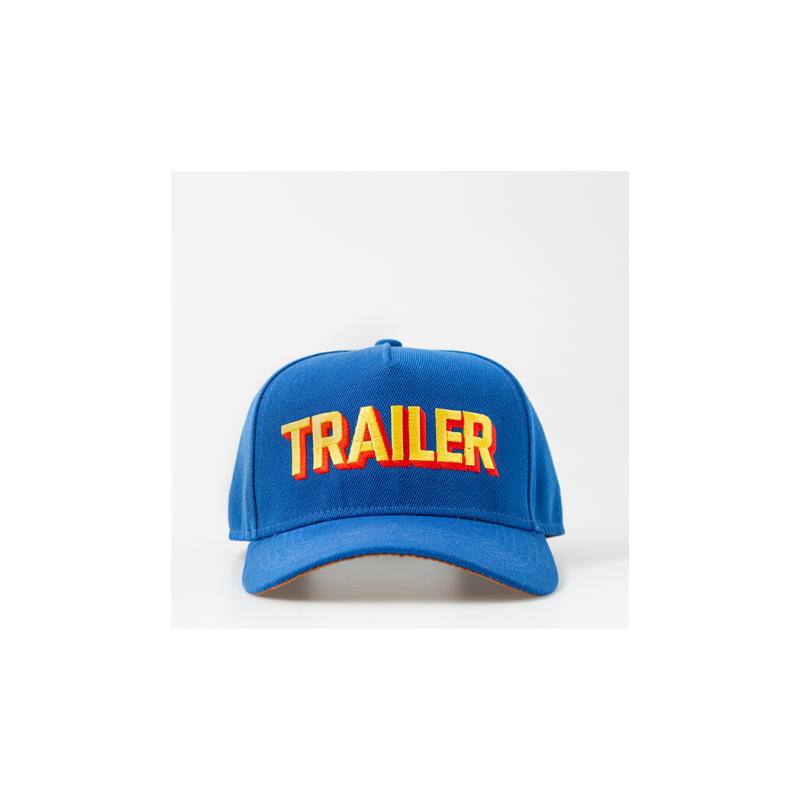 Blå keps med Trailer, tidningens logotyp, broderad framtill. I nacken står det "Alltid med dig längs vägen".